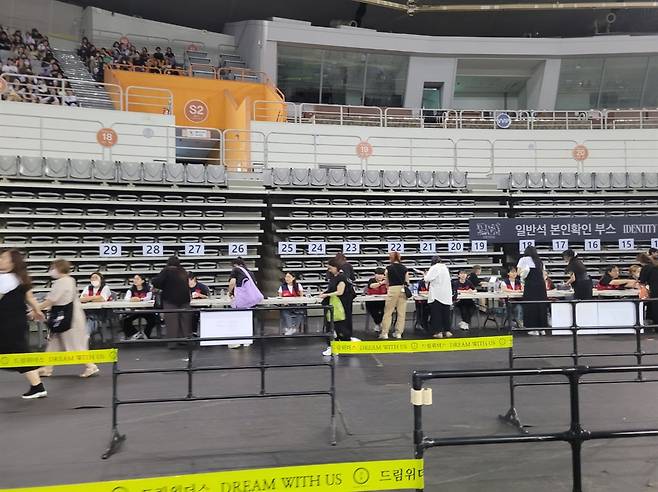 수용인원이 1만 5천명에 달하는 체조경기장에 들어갈 관객들의 본인인증을 하려면 인증을 하는 스태프들도 그만큼 많이 배치되어야 한다. 아침부터 공연장을 찾아 본인인증을 하는 팬들을 응대하는 일은 오전부터 공연 전까지 계속된다. 본인인증의 과정이 지체되어 제 시간에 입장을 못 하게 되는 주객전도 상황이 일어나서는 안 된다.
