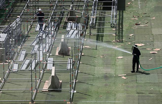 | ▲ 잼버리 K-팝 공연·폐영식, 서울월드컵경기장서 진행 8일 마포구 서울월드컵경기장(상암경기장)에서 2023 새만금 세계 스카우트 잼버리의 하이라이트 행사인 'K팝 슈퍼 라이브' 콘서트를 위한 무대가 설치되고 있다. 이날 문화체육관광부는 2023 새만금 잼버리의 K-팝 공연이 오는 11일 오후 7시 이곳 서울월드컵경기장에서 열린다고 밝혔다. 폐영식도 같은 곳에서 공연에 앞서 진행된다. 2023.8.8 |