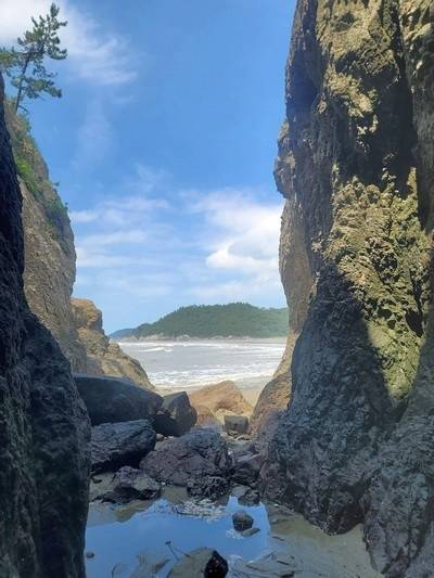 | ▲ 용전굴 안에서 보는 어머리해변의 모습 |