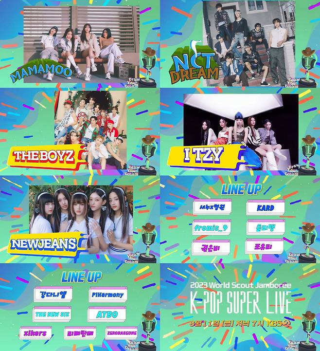 KBS 측은 9일 오후 2시 공식 유튜브 채널에 '2023 세계스카우트 잼버리 케이팝 슈퍼 라이브(2023 World Scout Jamboree K-POP SUPER LIVE Teaser) 라인업 티저' 영상을 게재했다.