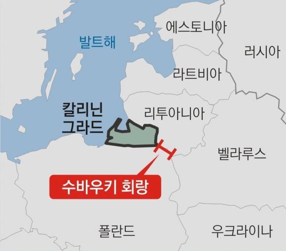 한편 벨라루스가 군사훈련을 시작한 수바우키 회랑은 러시아의 역외영토인 칼리닌그라드를 연결하는 약 100㎞의 육상 통로다. 발트 3국을 나토로부터 분리할 수 있고, 칼리닌그라드를 통해 발트해로 나아가는 통로이기 때문에 러시아로선 반드시 확보해야 하는 요충지다.