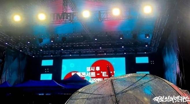 | ▲ 지난 2022년 8월 14일 E.T. 필름콘서트가 열릴 예정이던 제천비행장에 폭우가 쏟아지면서 공연이 중단됐다. |