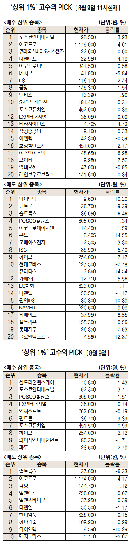 - [주식 초고수는 지금] 형님이 잠잠하니 막내가…에코프로에이치엔 매수 1위