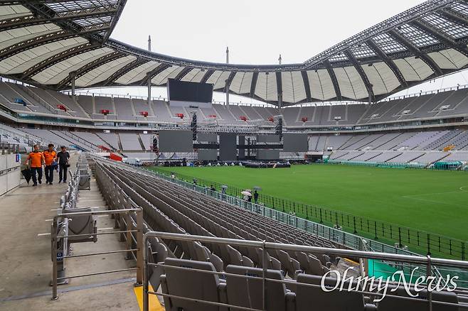 [오마이포토] 태풍 북상 중이지만... 잼버리 K팝 콘서트 준비 '분주'