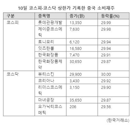 중국이 관광객이 급증할 것으로 기대되면서 중국 소비재 관련주에 투자심리가 몰리고 있는 것이다.