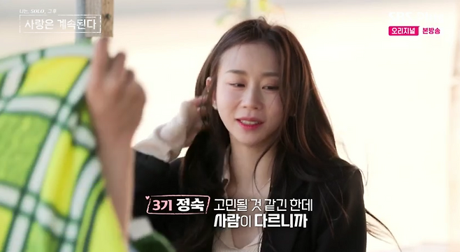 3기 정숙은 "힘들었던 부분이 있었던 것 같다"라며 부산 출신 3기 영철과 장거리 연애를 했던 때를 떠올렸다. 하지만 그는 "장거리 연애를 또 한 번 하게 된다면 고민될 것 같긴 한데 사람이 다르니까 (괜찮다)"라고 말했다.