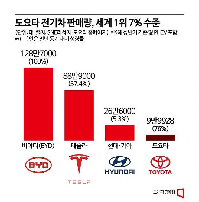 하지만 리콜이 지속돼 이미지가 훼손된다면 경쟁사에 뒤떨어진 판매량이 더욱 떨어질 수 있다는 분석이 나온다. SNE리서치 자료를 보면 상반기 전기차(PHEV 포함) 인도량 1위는 비야디(BYD)로, 128만7000대를 팔았다. 도요타 판매 대수는 비야디의 7% 수준이다. 경쟁사인 테슬라(88만9000대), 현대차·기아(26만6000대)보다 판매량이 떨어진다.