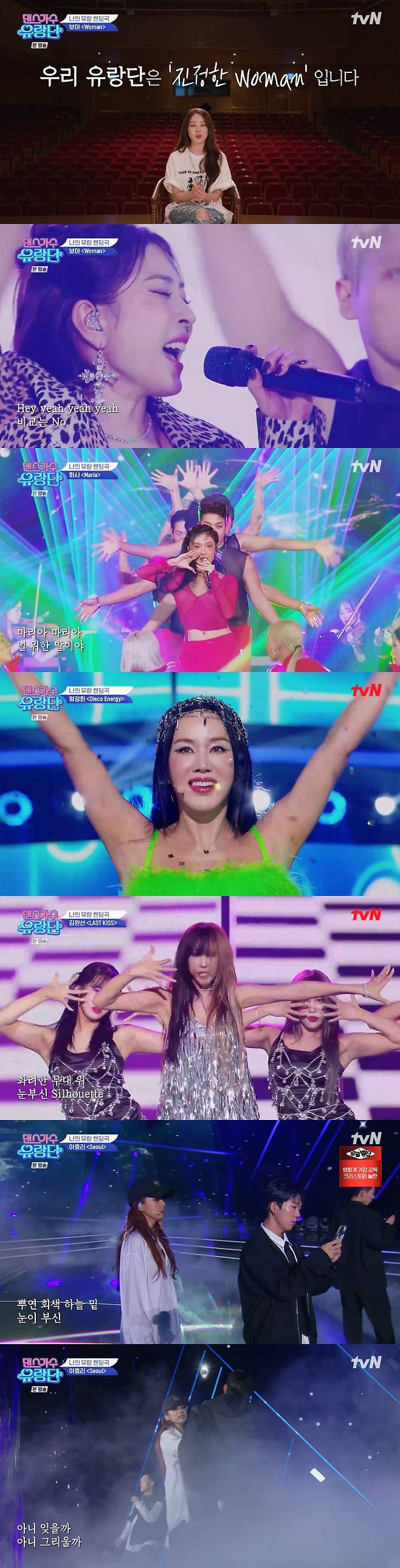 10일 방송된 tvN 예능 '댄스가수 유랑단' 12회에서는 김완선, 엄정화, 이효리, 보아, 화사 그리고 MC 홍현희가 함께하는 서울 유랑 공연 2부가 공개됐다. 마지막 유랑 여정인 만큼 특별한 축하 무대부터 유랑의 진정한 의미를 담은 무대와 메시지로 진한 여운을 전했다.