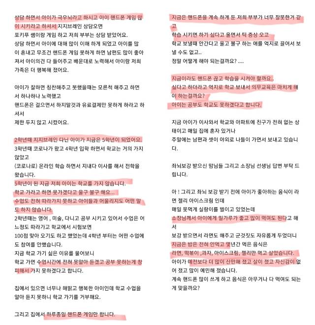 A연구소에서 상담받은 이들 중에서는 '아이에게 핸드폰 게임을 시키라고 하고 밀가루를 많이 먹여도 된다고 해서 먹였더니 예전보다 더 산만해졌고 몇 년 동안 밥을 안 먹고 라면, 과자, 젤리만 먹는데 이렇게 하는 게 맞는지 모르겠다'고 호소하는 이도 나왔다.