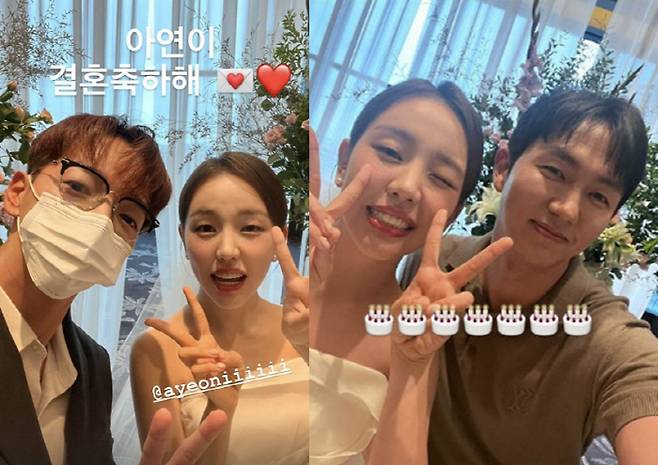 새신부가 되는 백아연의 앞날엔 JYP엔터테인먼트 식구들이 함께 했다. 2PM 준케이는 "아연이 결혼 축하해 ♥"라며 신부대기실에 있는 백아연과의 셀카를 공개했다. 임슬옹 역시 백아연과의 셀카로 결혼을 축하했다. 사진 속 백아연은 윙크를 하며 여유로워 보이는 모습. 선예와 유빈 역시 백아연의 결혼식에 참석했다. 오랜만에 만난 선예와 유빈은 함께 셀카를 찍으며 여전한 우정을 자랑했고 임슬옹은 이 모습을 공개하며 "동창회"라고 표현했다.