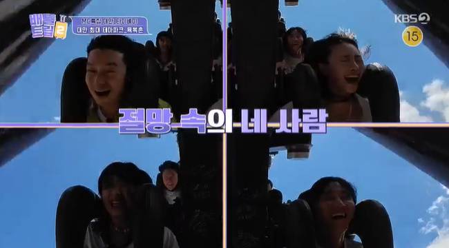 이용진, 아이키 등이 아찔한 놀이기구에 깜짝 놀랐다.