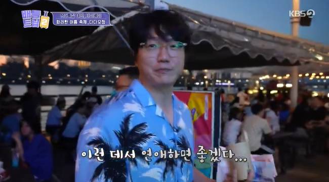 자신도 구경하고 싶어서 툴툴거리던 성시경은 결국 참지 못하고 자리를 이탈해 주변을 구경했다. 성시경은 술병이 가득 쌓인 가게 앞에서 걸음을 멈추고 “천국이네. 놀이동산이다”라고 즐거워 했다. 안주를 구매해 돌아오던 성시경은 “이런 데서 연애하면 좋겠다. 갑자기 외로워지네”라고 씁쓸해 했다.