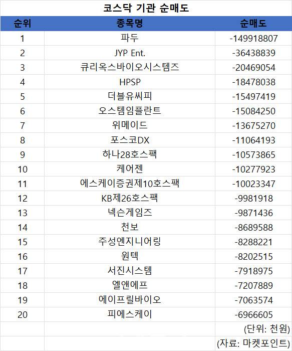 코스닥 주간 기관 순매도 1위 '파두'