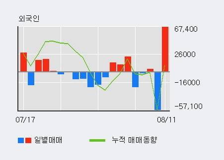 지난 한달을 기준으로 보면 외국인이 1.0만주를 순매수했고, 기관도 28.9만주를 순매수했다. 반면 개인들은 29.7만주를 순매도한 것으로 나타났다. 같은 기간 이 종목의 거래비중은 외국인과 개인이 각각 28.9%, 43.9%로 비중이 높다.