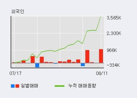 지난 한달을 기준으로 보면 외국인이 356.5만주를 순매수한 반면, 기관은 6.4만주를 순매도했고, 개인들도 51.2만주를 순매도한 것으로 집계됐다. 같은 기간 이 종목의 거래비중은 외국인과 개인이 각각 16.0%, 73.2%로 비중이 높다.
