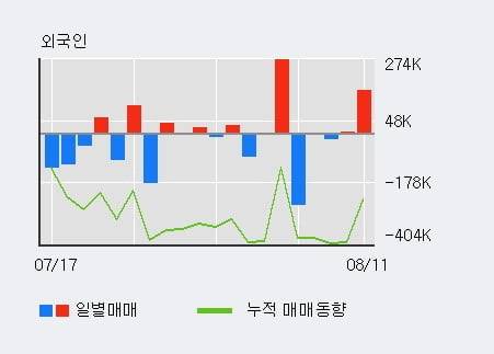 지난 한달을 기준으로 보면 기관이 27.8만주를 순매수했고, 개인들도 4.9만주를 순매수했다. 반면 그동안 외국인은 24.0만주를 순매도했다. 같은 기간 이 종목의 거래비중은 외국인과 개인이 각각 11.1%, 86.1%로 비중이 높다.