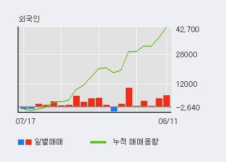 지난 한달을 기준으로 보면 외국인이 4.3만주를 순매수한 반면, 기관은 3.5만주를 순매도했고, 개인들도 1,912주를 순매도한 것으로 집계됐다. 같은 기간 이 종목의 거래 비중은 외국인과 개인이 각각 45.9%, 26.1%로 비중이 높다.