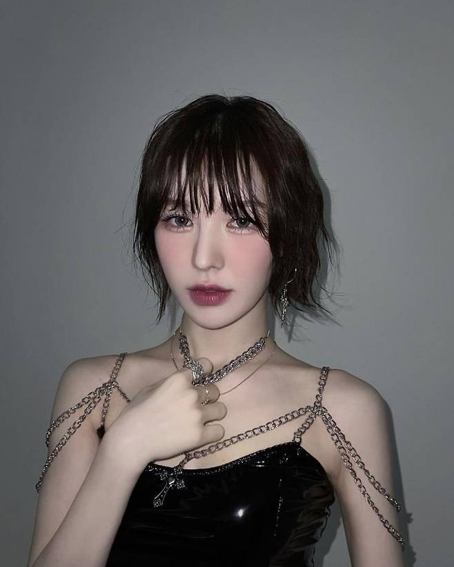 꽤 오랫동안 허쉬컷 단발 스타일을 유지중인 웬디. 그녀는 시스루 뱅으로 앞머리를 내 좀 더 러블리한 스타일링을 했어요. 허쉬컷 단발 스타일에 앞머리를 내면 긴 얼굴형을 보완할 수 있어서 좋아요.