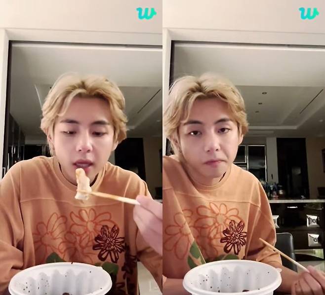 이날 뷔는 "내가 다이어트를 하다가 너무 멘붕이 와서 짜장면을 시켰다"며 "원래 유튜브 보면서 밥을 먹는데 오늘은 내 거울 좀 보면서 먹으려고 한다"고 털어놨다.