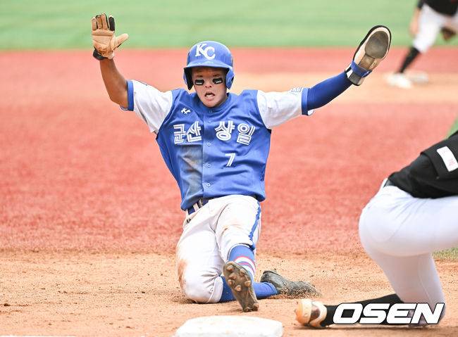 군산상일고 박찬우가 1회말 무사 1,2루 강민제의 타석 폭투를 틈타 3루 진루 성공하고 있다. 2023.08.14 / soul1014@osen.co.kr