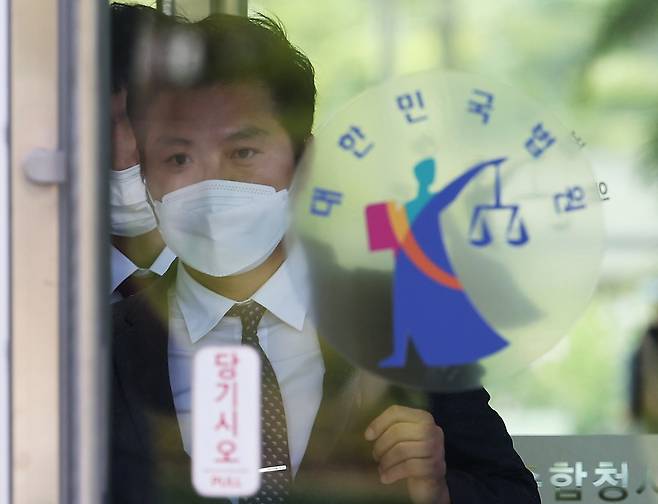 | ▲ 청와대 특별감찰반의 민간인 사찰 의혹 등을 폭로한 혐의(공무상 비밀누설)로 기소된 김태우 강서구청장(전 검찰 수사관)이 12일 오전 경기도 수원시 영통구 수원지방법원에서 열린 2심 선고공판을 마치고 나오고 있다. 2022.8.12 |