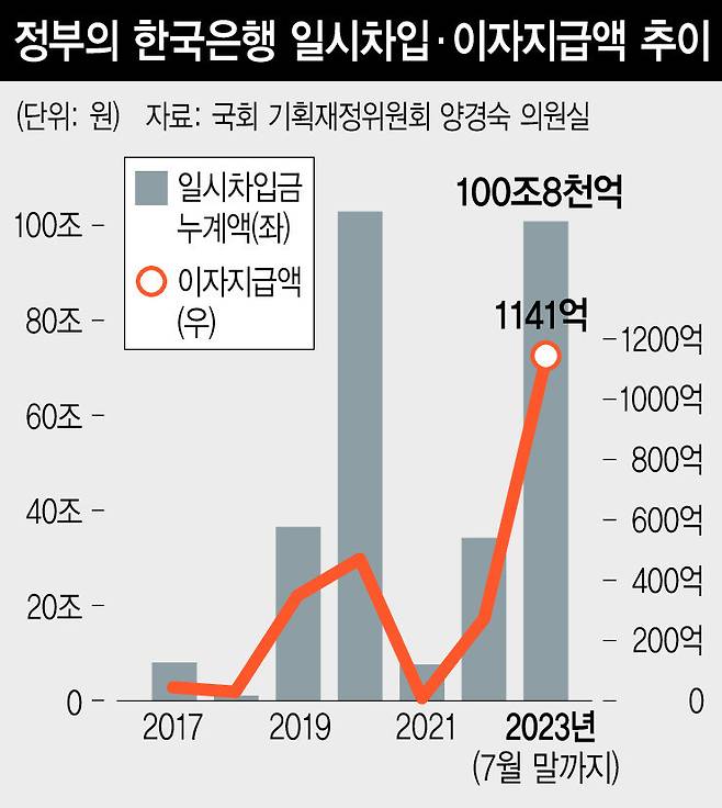 정부, 한은서 100조원 빌려 썼다…지급 이자도 이미 역대급