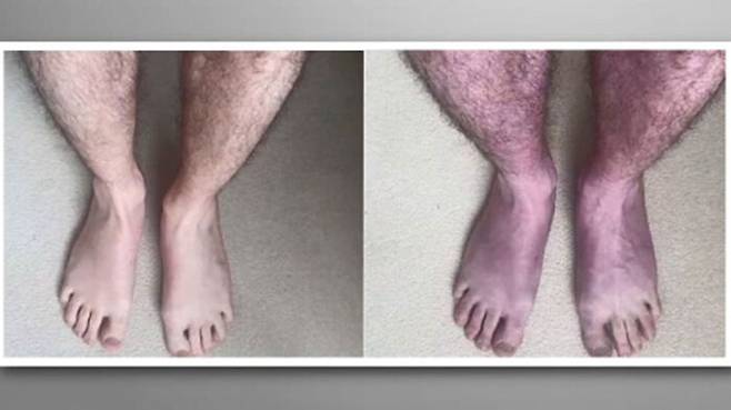 최근 조금만 서 있어도 다리가 붓는다며 말단 청색증을 호소하는 30대 남성 환자를 발견했는데, 이 환자는 서 있기 시작한 지 1분이 지나자 다리가 붓기 시작했고, 10분이 지나자 눈으로 구분할 수 있을 정도로 다리가 파랗게 변했다고 합니다.