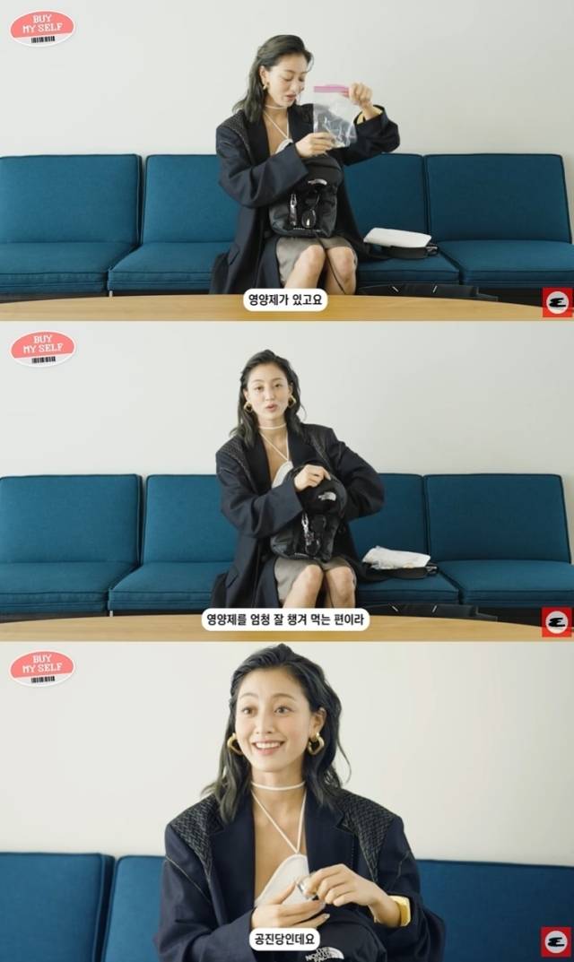 지효는 영양제를 소개하기도 했다. 그는 “영양제를 잘 챙겨 먹는 편”이라며 영양제 뭉치를 보여주는가 하면 “공진단이다”라며 약을 보여줬다. 이어 “얼마 전 예능을 촬영하다 상품으로 (공진단)을 받았다. 그게 아직도 이 가방에 있다”며 민망한 듯 웃음을 터뜨렸다.