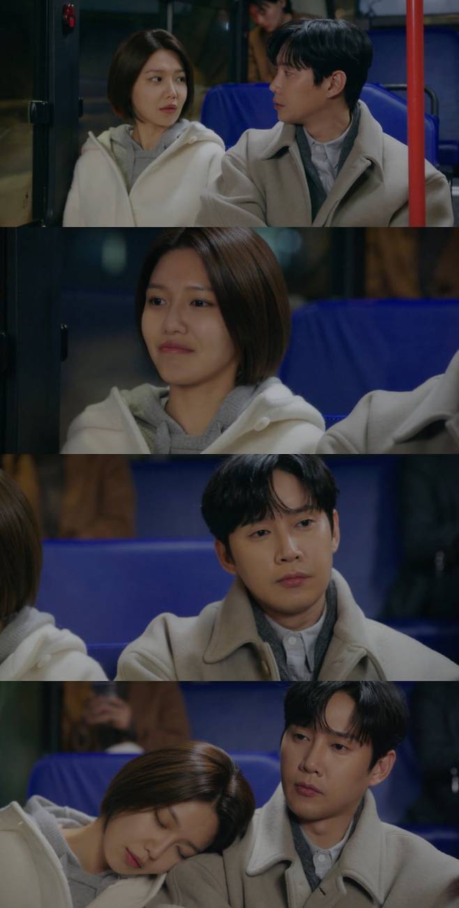 공개된 사진 속 김진희와 은재원은 늦은 밤 버스에 함께 앉아 있다. 기분 좋은 웃음을 짓고 있는 김진희 옆으로 수줍은 미소를 띤 은재원이 있다. 자연스럽게 나란히 앉은 두 사람. 마지막 사진 속 잠이 든 김진희는 은재원의 어깨에 살포시 기대기까지 했다. 은재원은 진중한 표정으로 한쪽 어깨를 묵묵히 내어주고 있어 보는 사람의 가슴까지 두근거리게 만든다.