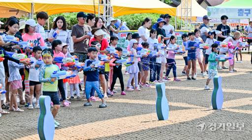 시민들이 물총을 쏘며 즐거운 시간을 보내고 있다.