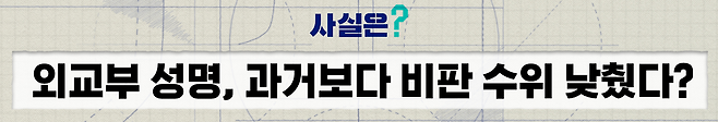 이번에 내놓은 외교부 성명을 다시 읽어보면, 과거에 내놨던 성명과 크게 달라지지 않았다는 점을 알 수 있습니다. 우리 외교부 역시 관례대로, 이전과 달라진 것 없이 성명을 내놓은 것으로 볼 수 있습니다.