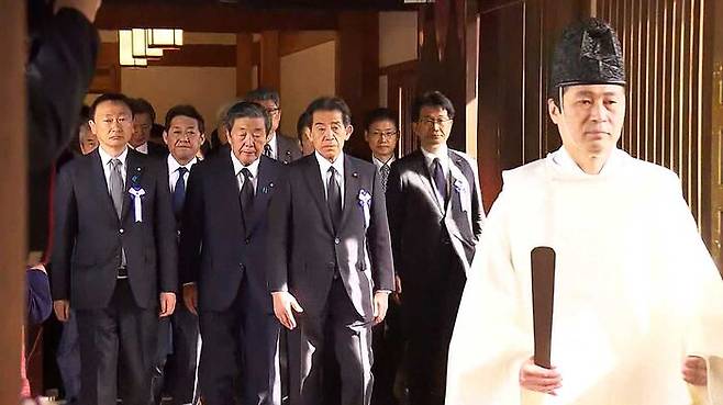 현직 일본 총리의 첫 '공식' 참배는 10년 뒤인 1985년 8월 15일로 기록돼 있습니다. 나카소네 야스히로 당시 총리는 패전 40주년을 맞아 각료들을 대동한 뒤 총리 자격으로 신사를 찾았습니다. 사실상 본격적인 참배의 물꼬를 텄습니다.