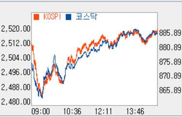 이날 기관은 1767억원, 외국인은 340억원 사들였다. 개인은 1984억원 팔아치웠다. 프로그램매매는 차익과 비차익을 합쳐 891억원 매수 우위를 보였다.