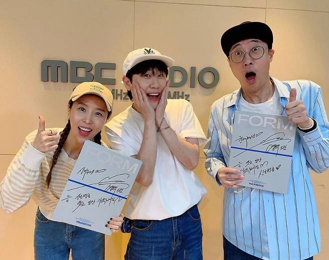 '올려'라는 곡에 대해서는 "원래는 '끌어올려'였다. (김)호영 형을 만났는데 '끌어올려'라는 곡을 준비하고 있다더라. 같은 제목이면 좀 그럴 것 같아서 '끌어'를 뺐다. 형이 중간에 내레이션을 해줬다"고 말했다. (사진=MBC 표준FM '이윤석, 신지의 싱글벙글쇼' 공식 소셜미디어)