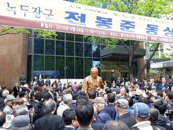 | ▲ 지난 2018년 4월 24일 서울 종로구 서린동 영풍문고앞에서 열린 전봉준 동상 제막식 장면 |