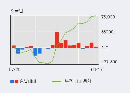 ◆ 주체별 매매동향- 최근 5일간 기관 대량 순매수지난 한달을 기준으로 보면 외국인이 7.6만주를 순매수했고, 기관도 16.1만주를 순매수했다.