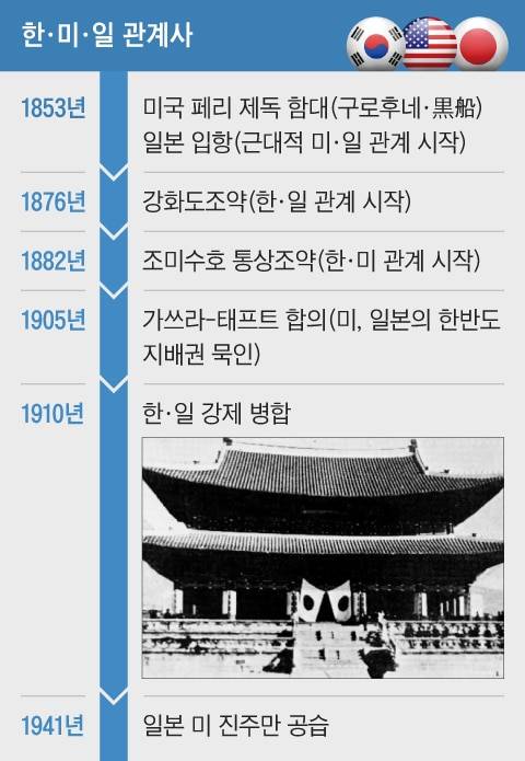 18일(현지 시각) 미국 대통령 별장인 캠프 데이비드에서 열린 한·미·일 정상회의에 대해 외교안보 전문가들은 미·일 동맹(1951년), 한미 동맹(1953년)이라는 현재 동북아 안보 체제 탄생 이후 70년 만에 등장한 가장 큰 변화라고 평가했다. 세계 경제의 32%를 차지하는 3국 정상이 매년 만나 군사, 외교부터 반도체 공급까지 논의하는 강력한 경제·안보 블록이 탄생했다는 의미도 있다. 북핵 등 공동 위협에 직면해 있고, 안보와 경제에선 서로 의존하면서도 전쟁, 식민 지배 역사 등으로 복잡했던 3국 관계가 새로운 역사적 단계에 들어섰다.
