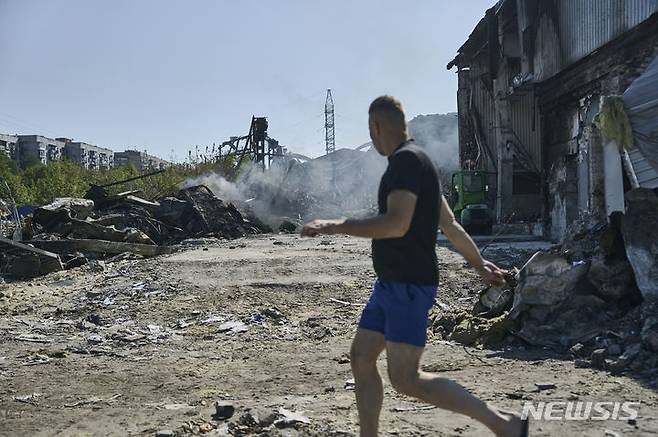 [크라마토르스크=AP/뉴시스] 18일(현지시각) 우크라이나 도네츠크주 크라마토르스크에서 한 주민이 러시아군의 공습 후 집 주변을 살피고 있다. 2023.08.19.