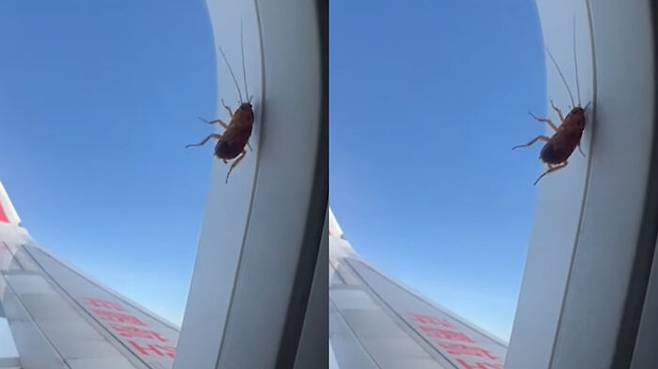 영상을 촬영한 A 씨는 "비행기 창가석에 앉아 아름다운 풍경을 즐기려고 했는데, (창문 밖에) 커다란 바퀴벌레가 있었다"며 "비행기에서 바퀴벌레를 목격한 것은 처음이라 영상을 촬영했다"라고 밝혔습니다.