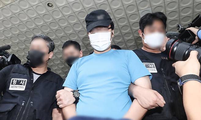 | 법원 이송되는 피의자 신림동 등산로 성폭행 사건 피의자 최모(30)씨가 지난 19일 영장실질심사를 받기 위해 법원으로 이송되는 모습. 뉴시스 |