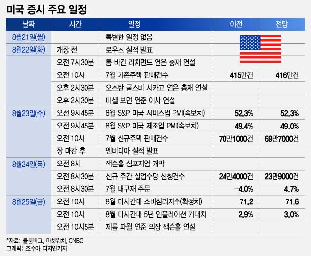 오는 25일 오전 10시5분에는 제롬 파월 연준(연방준비제도) 의장이 잭슨홀에서 열리는 중앙은행 심포지엄에서 연설을 한다.