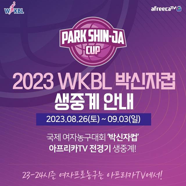 아프리카TV는 오는 26일(토)부터 '2023 여자프로농구(WKBL) 박신자컵' 전경기를 생중계한다고 밝혔다.