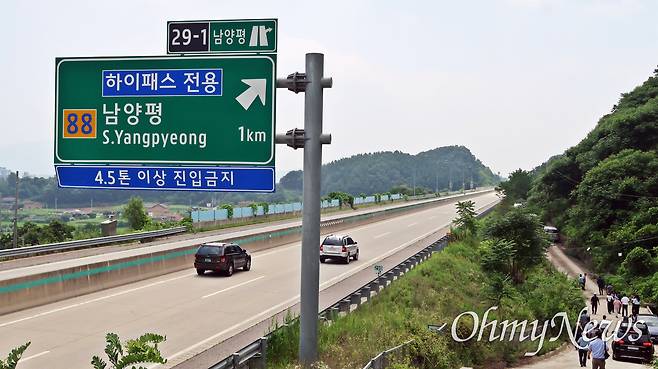 | ▲ 경기 양평 강상면에서 바라본 중부내륙고속도로 남양평IC 인근. 오른쪽 편 인근에 윤석열 대통령 처가 땅이 있다. 당초 중부내륙고속도로와 이어질 예정이던 '서울~양평 고속도로'의 종점은 양서면에 생길 계획이었으나 갑작스레 강상면으로 바뀌어 논란이 일었다. 2023.7.6 |