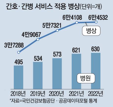 보험사들이 주장하는 간병비 부담 공포도 과장된 면이 있다. 병실에 따라 다르긴 하지만 간호간병 통합서비스를 이용하면 환자 10명중 8명(상급병원, 종합병원 기준)은 하루 부담이 5만원 미만인 것으로 나타났다. 물론 인구 고령화와 만성질환 증가로 간병비 지출은 급증하는 추세다. 정부는 이같은 부담을 덜어주기 위해 간호간병통합병상을 10만개까지 늘린다는 목표를 세웠다. 간호사와 간호조무사가 간병서비스까지 제공하자는 취지인데 요금도 하루 1만~2만원 수준이다. 작년 기준 전국 간호간병서비스 적용 병상은 5만6400개가 넘는다.