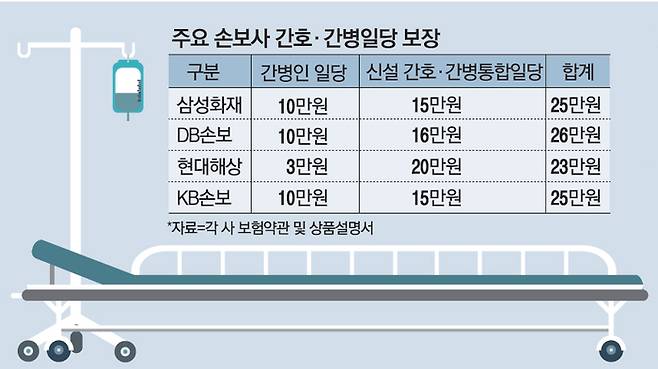 22일 업계에 따르면 금융당국은 최근 주요 손보사에 간호간병보험 보장한도 관련 자료를 제출하라고 통보했다. 소위 빅4 보험사들이 ‘간호간병 보장’ 증액 경쟁을 벌이고 있는 데다, 최근에는 실손의료보험에서 보장되지 않는 요양시설과 재가급여까지 보장하는 상품이 나올 정도로 마케팅이 과열되고 있어서다.