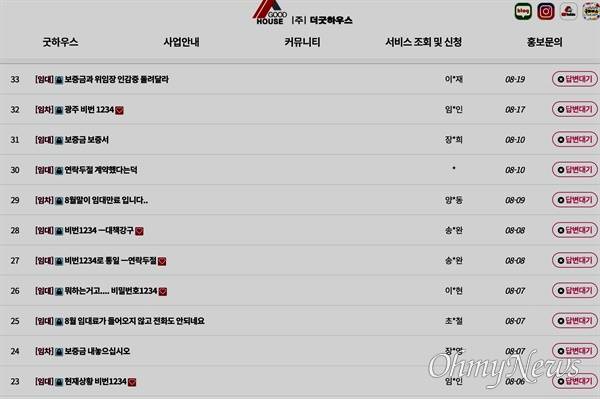 | ▲ 주택임대관리업체 더굿하우스의 홈페이지 게시판에는 세입자 등의 보증금 반환을 요구하는 글이 계속 올라오고 있다. |