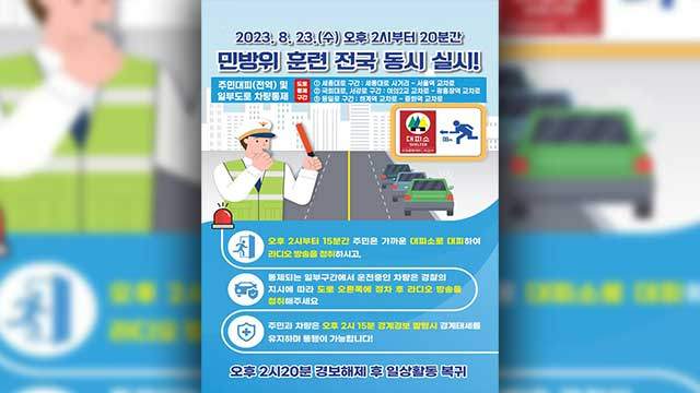 오후 2시 민방위, 사이렌 울리면 대피소로…일부 도로 통제