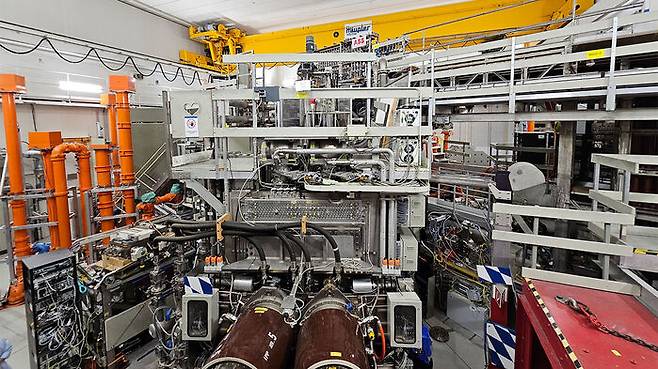 '방사선 주의' 표지가 붙은 두께 5cm 정도의 육중한 철문. 엄격한 출입 절차를 거쳐 내부로 들어가니 높이 9미터 정도의 공간을 가득 채운 거대한 설비가 눈에 들어왔다. 설비 양 옆으로 천장까지 뻗은 주황색 배관과 각종 전선들이 어지럽게 널려 있었고, 연구자들은 배관 곳곳을 살피며 분주하게 오가고 있었다. '열 통로'라고 불리는 사람 몸통만한 배관을 들여다보니 은빛의 텅스텐이 내부를 감싸고 있었다. 설비의 정체는 ASDEX-U(Axially Symmetric Divertor Experiment-Upgrade)로 토카막 방식의 핵융합 장치다. 울리크 스트로크 막스플랑크 연구소 플라즈마 연구 교수는 "설비 안쪽에 둥근 도넛 모양의 플라즈마 장치가 숨겨져 있다"면서 "장비 보수와 업그레이드를 위해 지난해 여름부터 2년 간 작동을 중단해 설비 안쪽까지 볼 수 있는 것"이라고 했다.