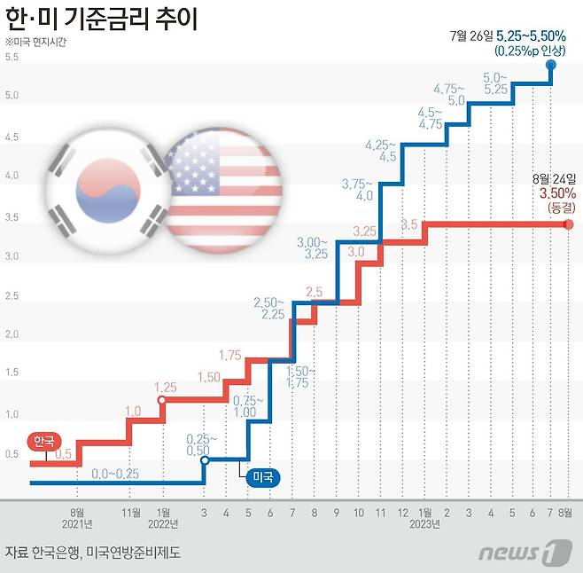 (서울=뉴스1) 윤주희 디자이너 = 한은 금융통화위원회(금통위)는 24일 통화정책방향 결정회의에서 현행 연 3.50%인 기준금리를 유지하기로 했다. 지난 2월, 4월, 5월, 7월에 이은 5연속 동결이다.