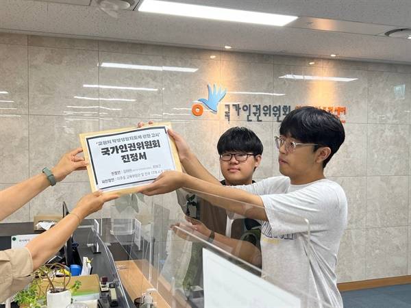 | ▲ 교육부 고시에 대한 입장표명, 정책 권고 등을 요구하는 진정서를 국가인권위원회에 제출하고 있다. |